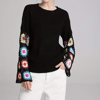 เสื้อสเวตเตอร์ปักลายดอกไม้แนววินเทจสีสันสดใสระบายได้ดีดีไซน์ทันสมัยสำหรับเทศกาลคริสต์มาส